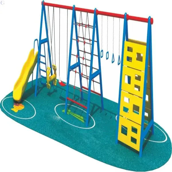 This playground set combines various activities, promoting physical fitness and imaginative play in a bright and inviting environment.